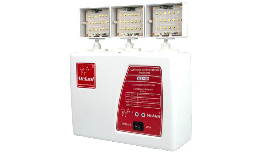 A luminária de Emergência Autônoma SLE-4000, pode ser aplicada nos mais diversos ambientes, tanto a nível residencial e comercial quanto aplicações industriais. Uma luminária com altíssimo fluxo luminoso, que garante um ótimo desempenho em locais amplos, podendo iluminar uma área de 350m² a 400m². Pode ser instalada tanto em paredes quanto em estruturas metálicas. Possui carregador inteligente CC/CV e controle digital de carga e descarga, que em conjunto com o exclusivo sistema de AUTOTESTE proporcionam um significativo aumento da vida útil da bateria, reduzindo os custos posteriores com a manutenção do sistema.